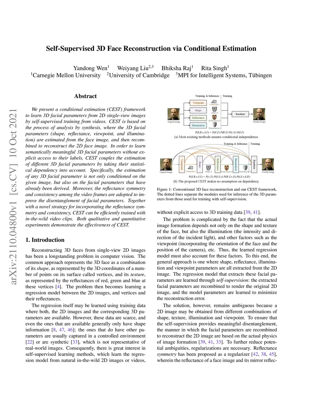 Self-Supervised 3D Face Reconstruction via Conditional Estimation