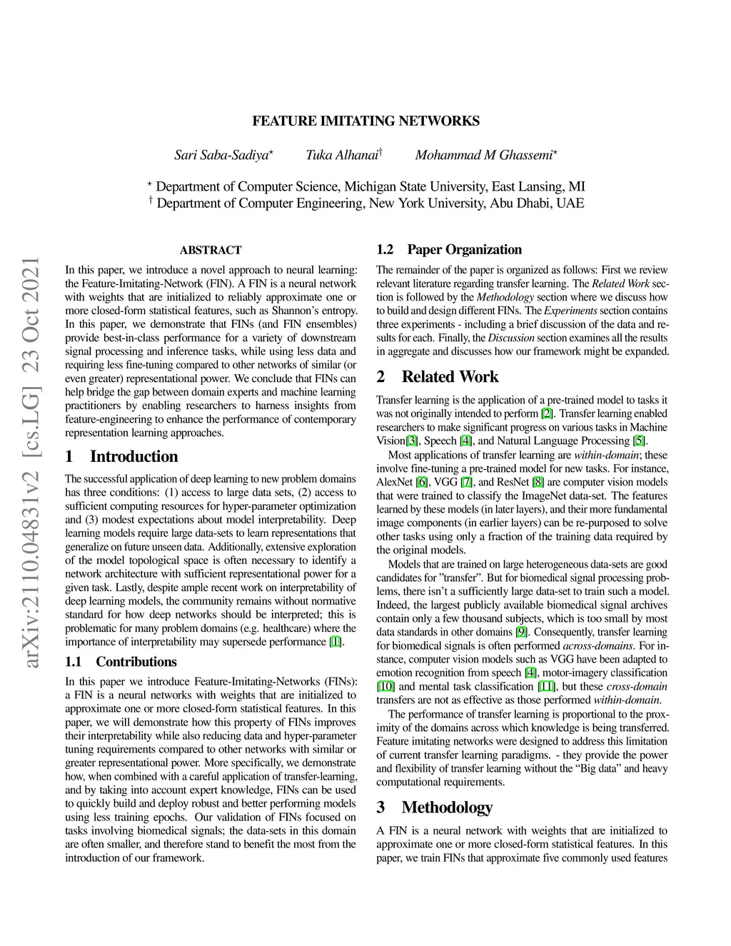 In this paper, we introduce a novel approach to neural learning: the Feature-Imitating-Network (FIN). A FIN is a neural network with weights that are initialized to reliably approximate one or more closed-form statistical features, such as Shannon's entropy. In this paper, we demonstrate that FINs (and FIN ensembles) provide best-in-class performance for a variety of downstream signal processing and inference tasks, while using less data and requiring less fine-tuning compared to other networks of similar (or even greater) representational power. We conclude that FINs can help bridge the gap between domain experts and machine learning practitioners by enabling researchers to harness insights from feature-engineering to enhance the performance of contemporary representation learning approaches.