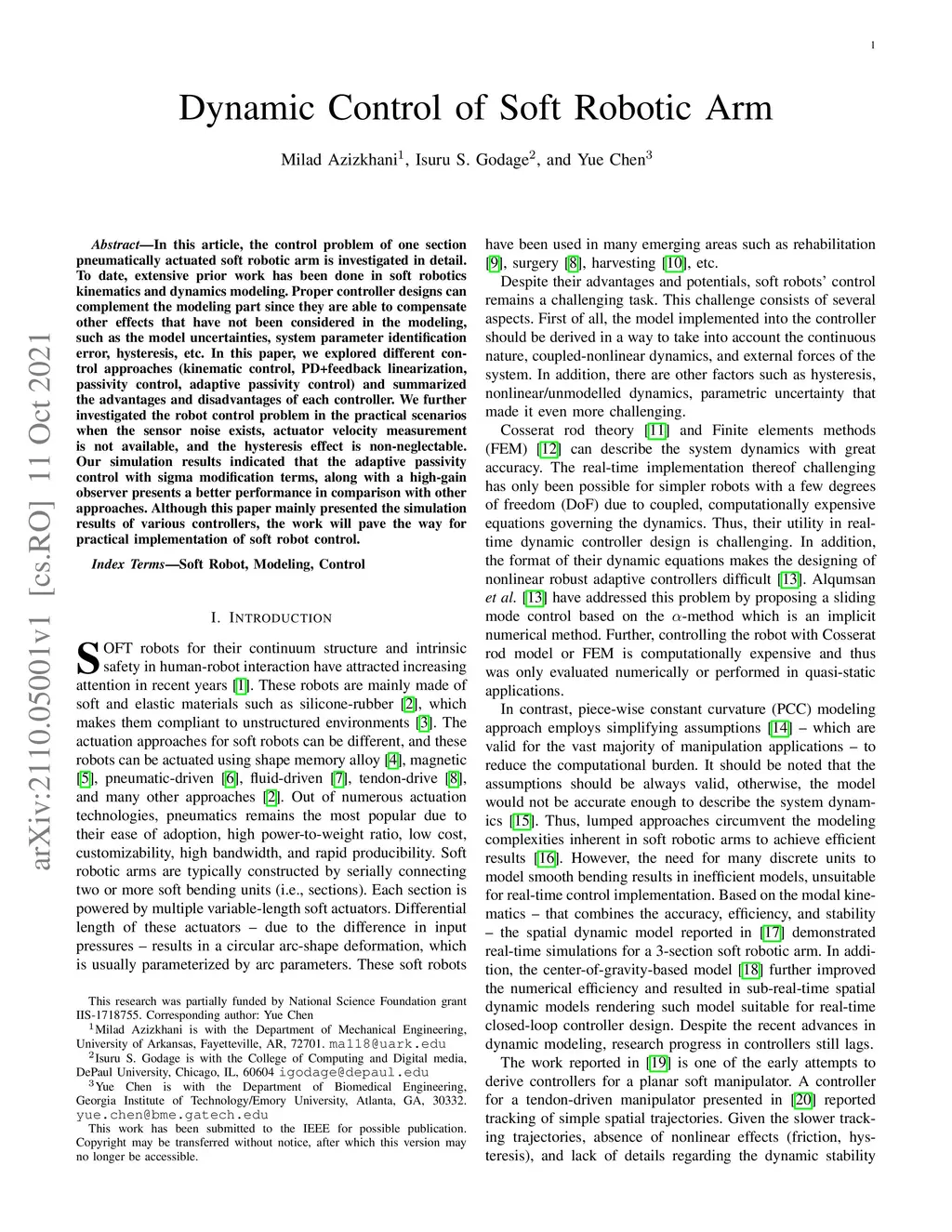 Dynamic Control of Soft Robotic Arm