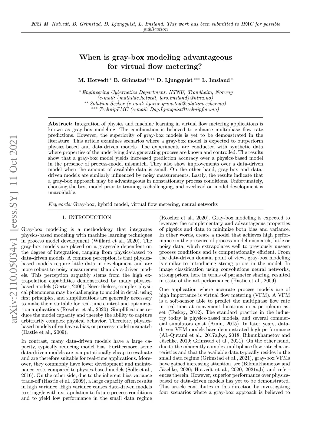 Integration of physics and machine learning in virtual flow metering applications is known as gray-box modeling. The combination is believed to enhance multiphase flow rate predictions. However, the superiority of gray-box models is yet to be demonstrated in the literature. This article examines scenarios where a gray-box model is expected to outperform physics-based and data-driven models. The experiments are conducted with synthetic data where properties of the underlying data generating process are known and controlled. The results show that a gray-box model yields increased prediction accuracy over a physics-based model in the presence of process-model mismatch. They also show improvements over a data-driven model when the amount of available data is small. On the other hand, gray-box and data-driven models are similarly influenced by noisy measurements. Lastly, the results indicate that a gray-box approach may be advantageous in nonstationary process conditions. Unfortunately, choosing the best model prior to training is challenging, and overhead on model development is unavoidable.