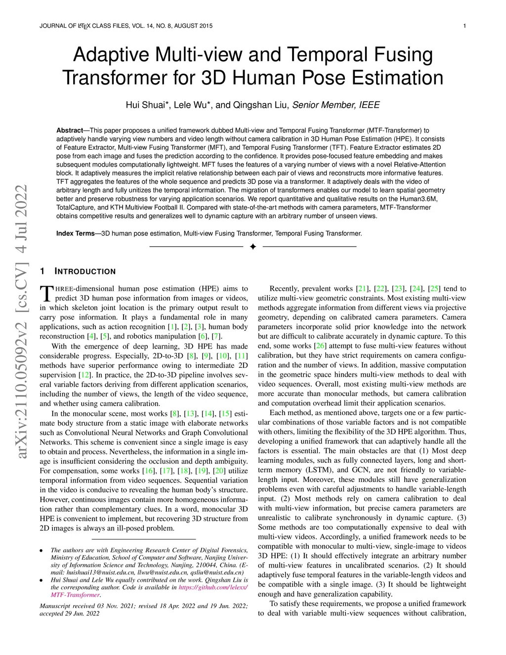 Adaptive Multi-view and Temporal Fusing Transformer for 3D Human Pose