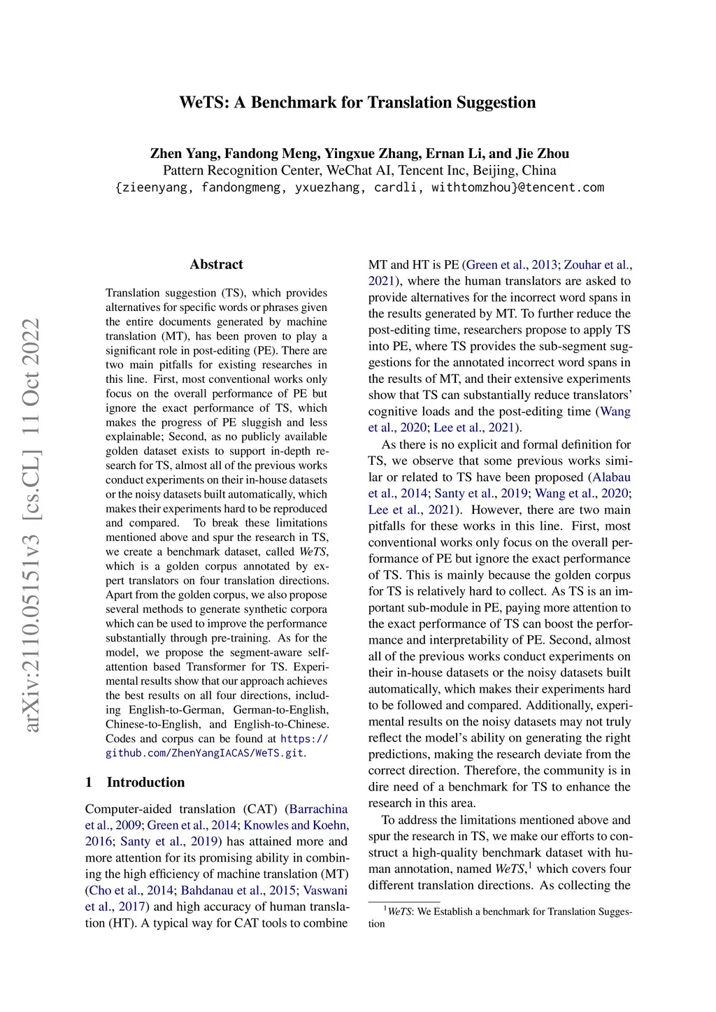 WeTS: A Benchmark for Translation Suggestion