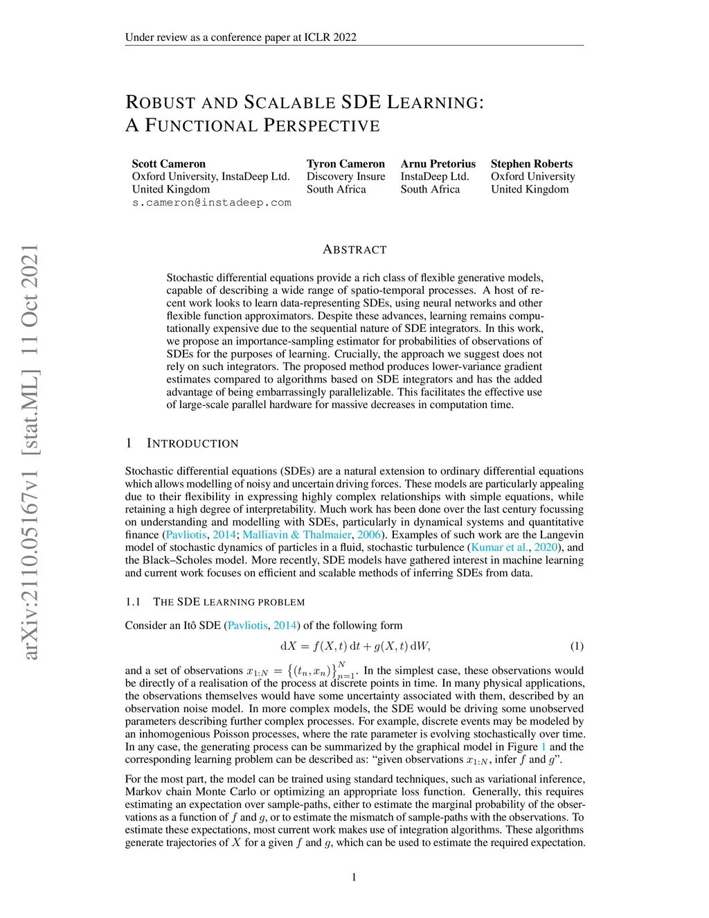 Stochastic differential equations provide a rich class of flexible generative models, capable of describing a wide range of spatio-temporal processes. A host of recent work looks to learn data-representing SDEs, using neural networks and other flexible function approximators. Despite these advances, learning remains computationally expensive due to the sequential nature of SDE integrators. In this work, we propose an importance-sampling estimator for probabilities of observations of SDEs for the purposes of learning. Crucially, the approach we suggest does not rely on such integrators. The proposed method produces lower-variance gradient estimates compared to algorithms based on SDE integrators and has the added advantage of being embarrassingly parallelizable. This facilitates the effective use of large-scale parallel hardware for massive decreases in computation time.