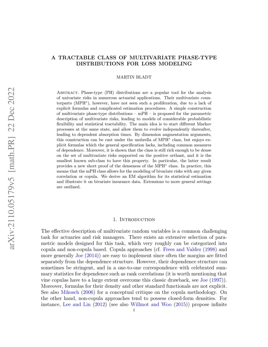 Phase-type (PH) distributions are a popular tool for the analysis of univariate risks in numerous actuarial applications. Their multivariate counterparts (MPH^\ast), however, have not seen such a proliferation, due to lack of explicit formulas and complicated estimation procedures. A simple construction of multivariate phase-type distributions -- mPH -- is proposed for the parametric description of multivariate risks, leading to models of considerable probabilistic flexibility and statistical tractability. The main idea is to start different Markov processes at the same state, and allow them to evolve independently thereafter, leading to dependent absorption times. By dimension augmentation arguments, this construction can be cast into the umbrella of MPH^\ast class, but enjoys explicit formulas which the general specification lacks, including common measures of dependence. Moreover, it is shown that the class is still rich enough to be dense on the set of multivariate risks supported on the positive orthant, and it is the smallest known sub-class to have this property. In particular, the latter result provides a new short proof of the denseness of the MPH^\ast class. In practice this means that the mPH class allows for modeling of bivariate risks with any given correlation or copula. We derive an EM algorithm for its statistical estimation, and illustrate it on bivariate insurance data. Extensions to more general settings are outlined.