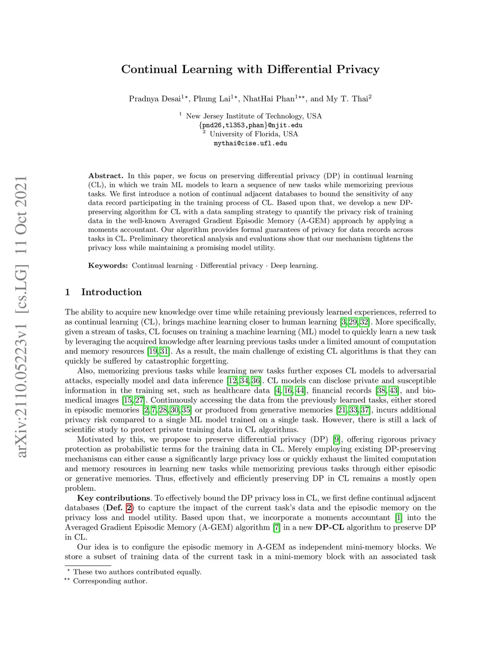 Continual Learning with Differential Privacy
