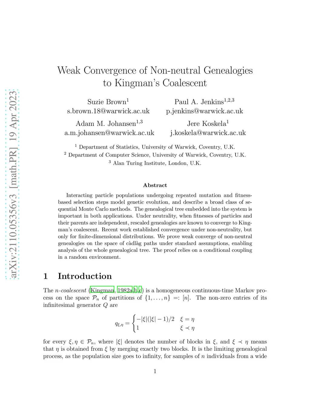 Stochastic Processes and their Applications (SPA), 2021