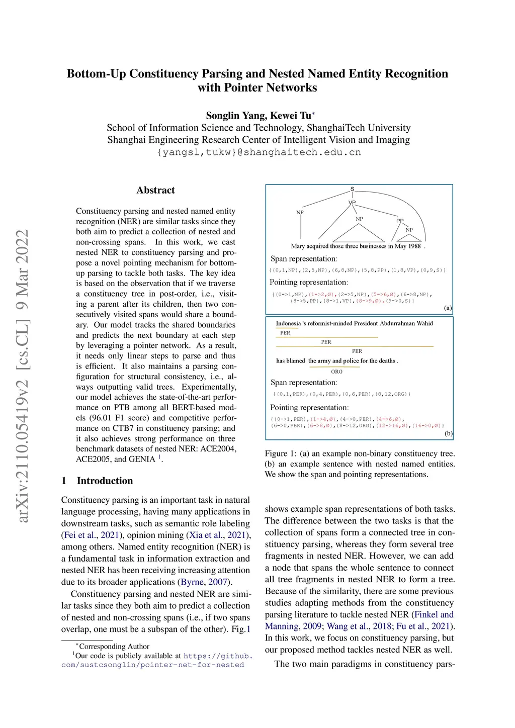 Bottom-Up Constituency Parsing and Nested Named Entity Recognition with