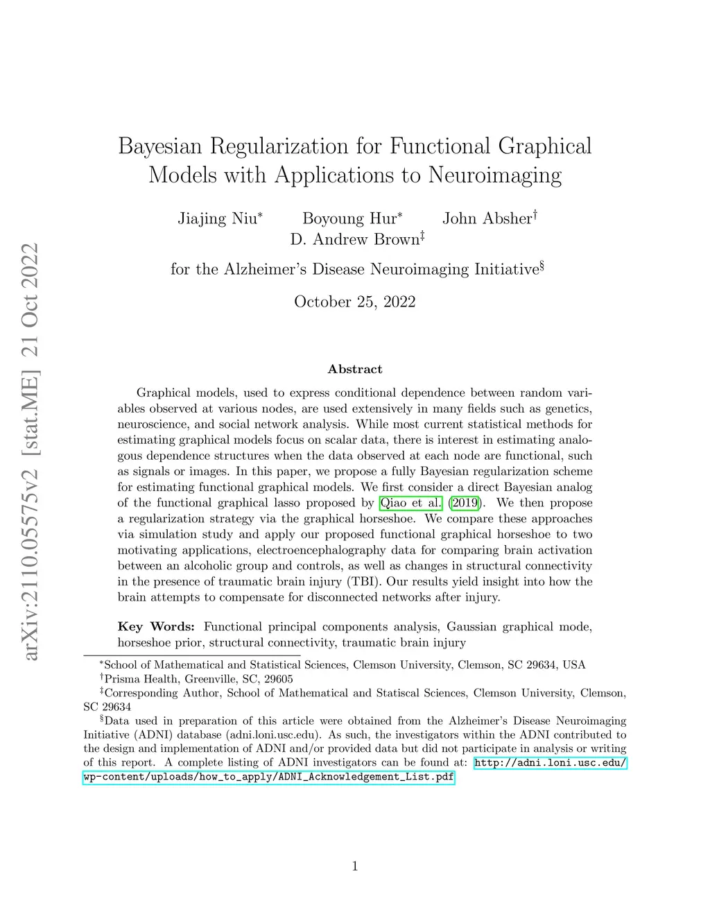 Graphical models, used to express conditional dependence between random variables observed at various nodes, are used extensively in many fields such as genetics, neuroscience, and social network analysis. While most current statistical methods for estimating graphical models focus on scalar data, there is interest in estimating analogous dependence structures when the data observed at each node are functional, such as signals or images. In this paper, we propose a fully Bayesian regularization scheme for estimating functional graphical models. We first consider a direct Bayesian analog of the functional graphical lasso proposed by Qiao et al. (2019). We then propose a regularization strategy via the graphical horseshoe. We compare these approaches via simulation study and apply our proposed functional graphical horseshoe to two motivating applications, electroencephalography data for comparing brain activation between an alcoholic group and controls, as well as changes in structural connectivity in the presence of traumatic brain injury (TBI). Our results yield insight into how the brain attempts to compensate for disconnected networks after injury.