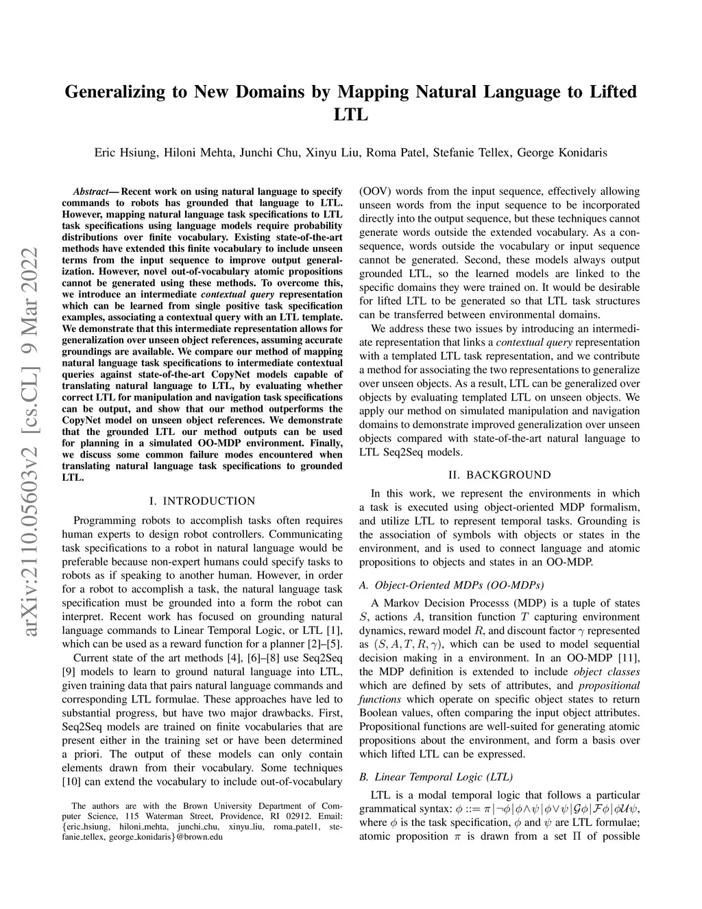 Generalizing to New Domains by Mapping Natural Language to Lifted LTL