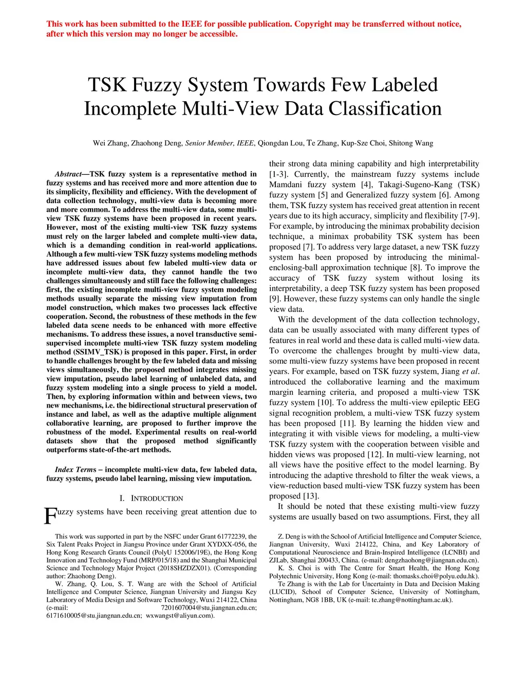 TSK Fuzzy System Towards Few Labeled Incomplete Multi-View Data