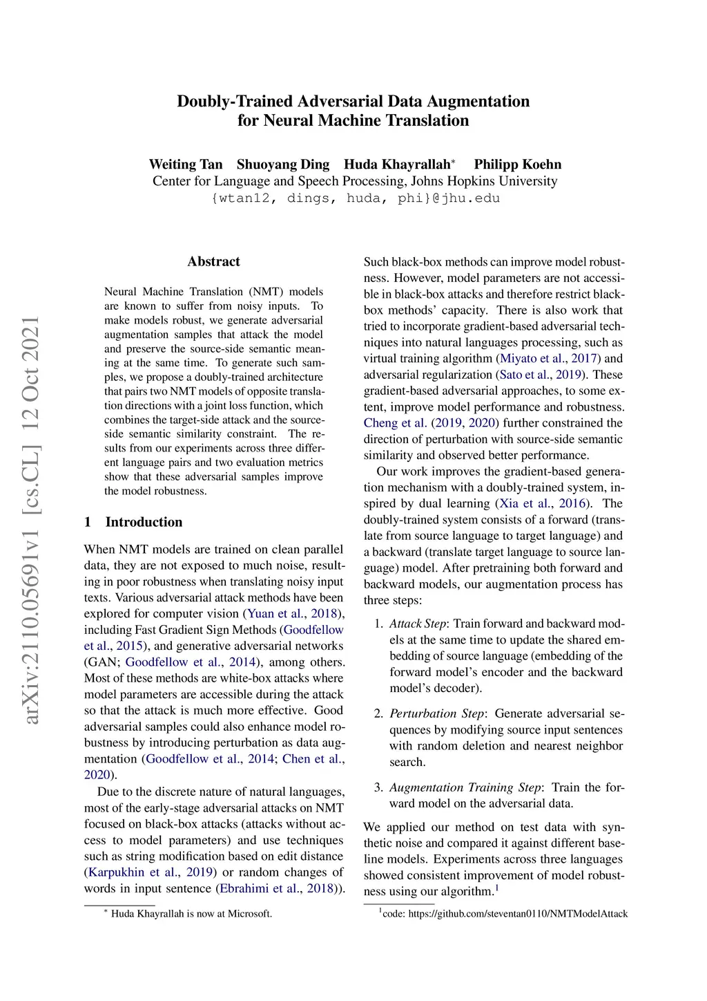 Doubly-Trained Adversarial Data Augmentation for Neural Machine