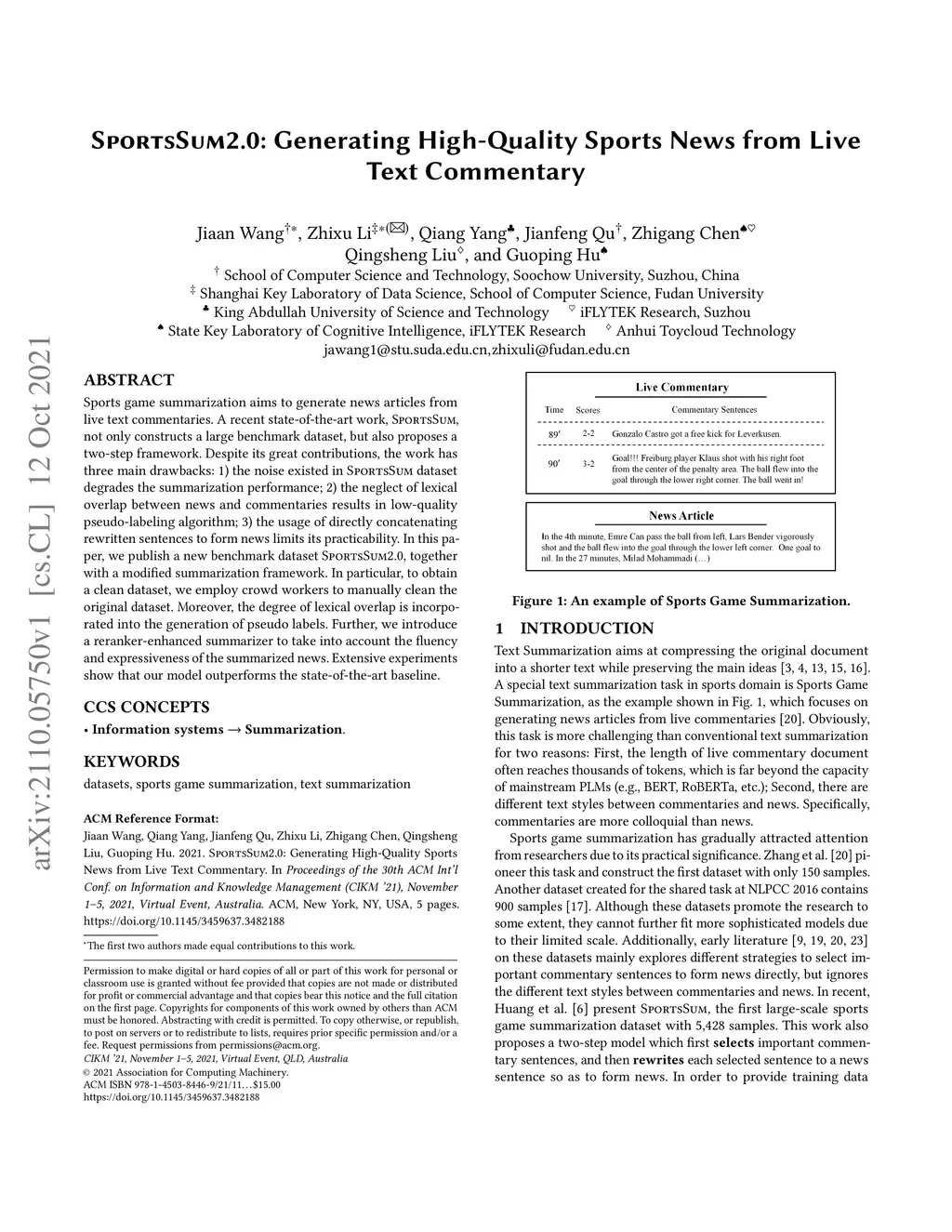 Sports game summarization aims to generate news articles from live text commentaries. A recent state-of-the-art work, SportsSum, not only constructs a large benchmark dataset, but also proposes a two-step framework. Despite its great contributions, the work has three main drawbacks: 1) the noise existed in SportsSum dataset degrades the summarization performance; 2) the neglect of lexical overlap between news and commentaries results in low-quality pseudo-labeling algorithm; 3) the usage of directly concatenating rewritten sentences to form news limits its practicability. In this paper, we publish a new benchmark dataset SportsSum2.0, together with a modified summarization framework. In particular, to obtain a clean dataset, we employ crowd workers to manually clean the original dataset. Moreover, the degree of lexical overlap is incorporated into the generation of pseudo labels. Further, we introduce a reranker-enhanced summarizer to take into account the fluency and expressiveness of the summarized news. Extensive experiments show that our model outperforms the state-of-the-art baseline.