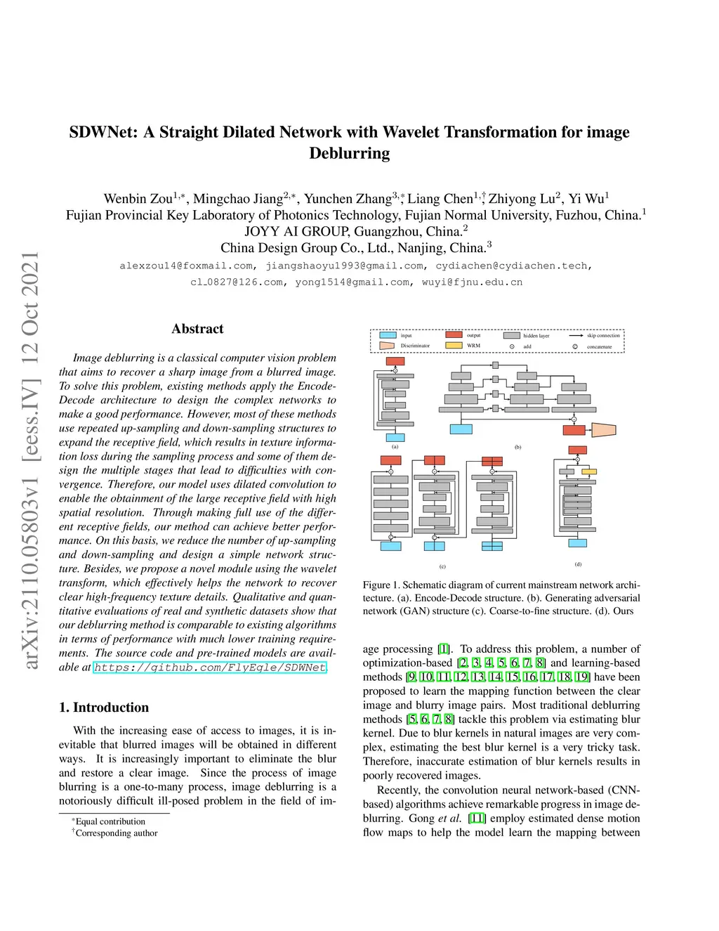 SDWNet: A Straight Dilated Network with Wavelet Transformation for Image