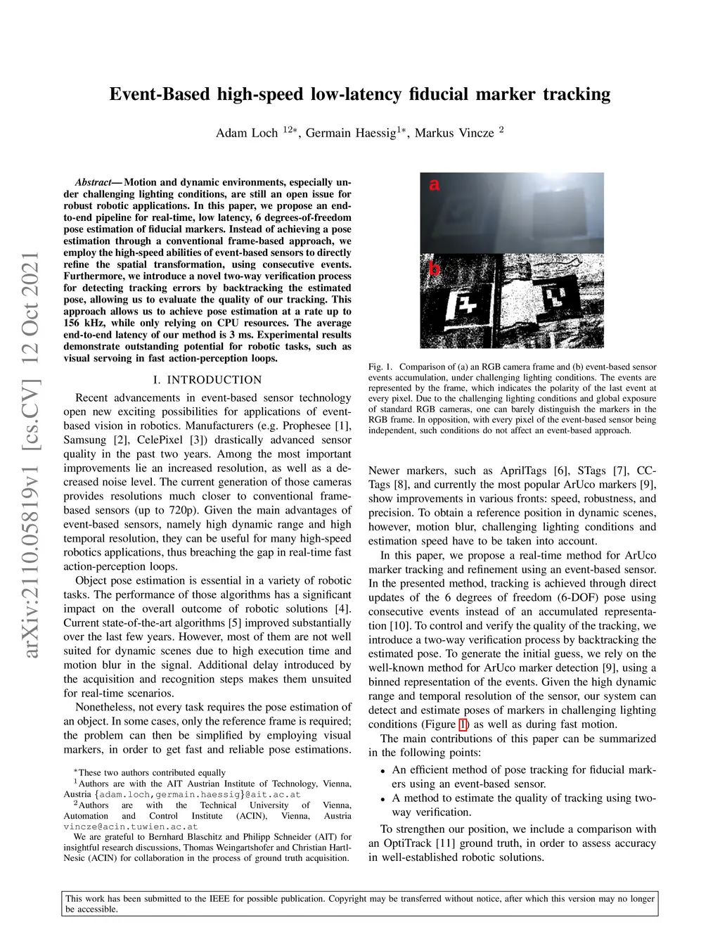 Event-Based high-speed low-latency fiducial marker tracking