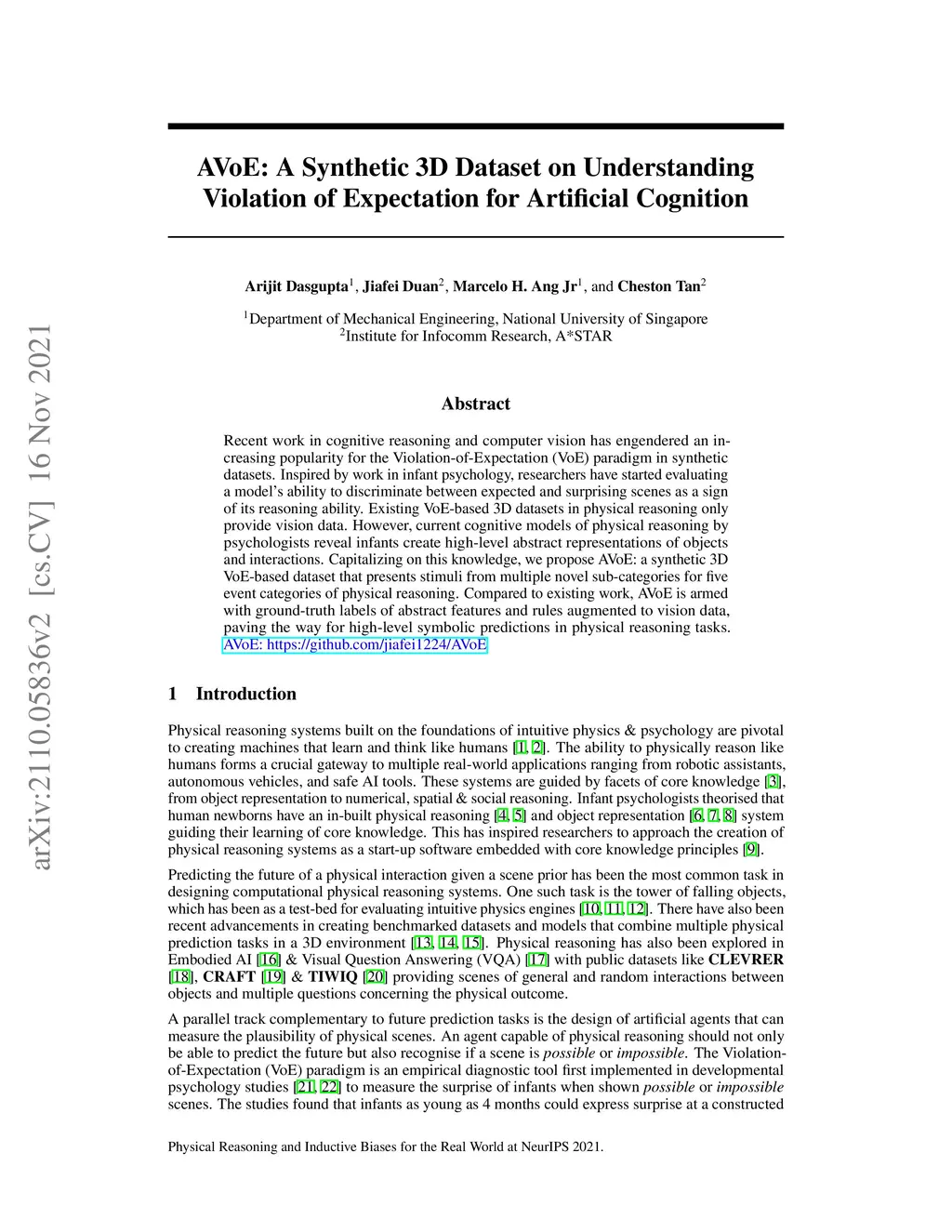 AVoE: A Synthetic 3D Dataset on Understanding Violation of Expectation