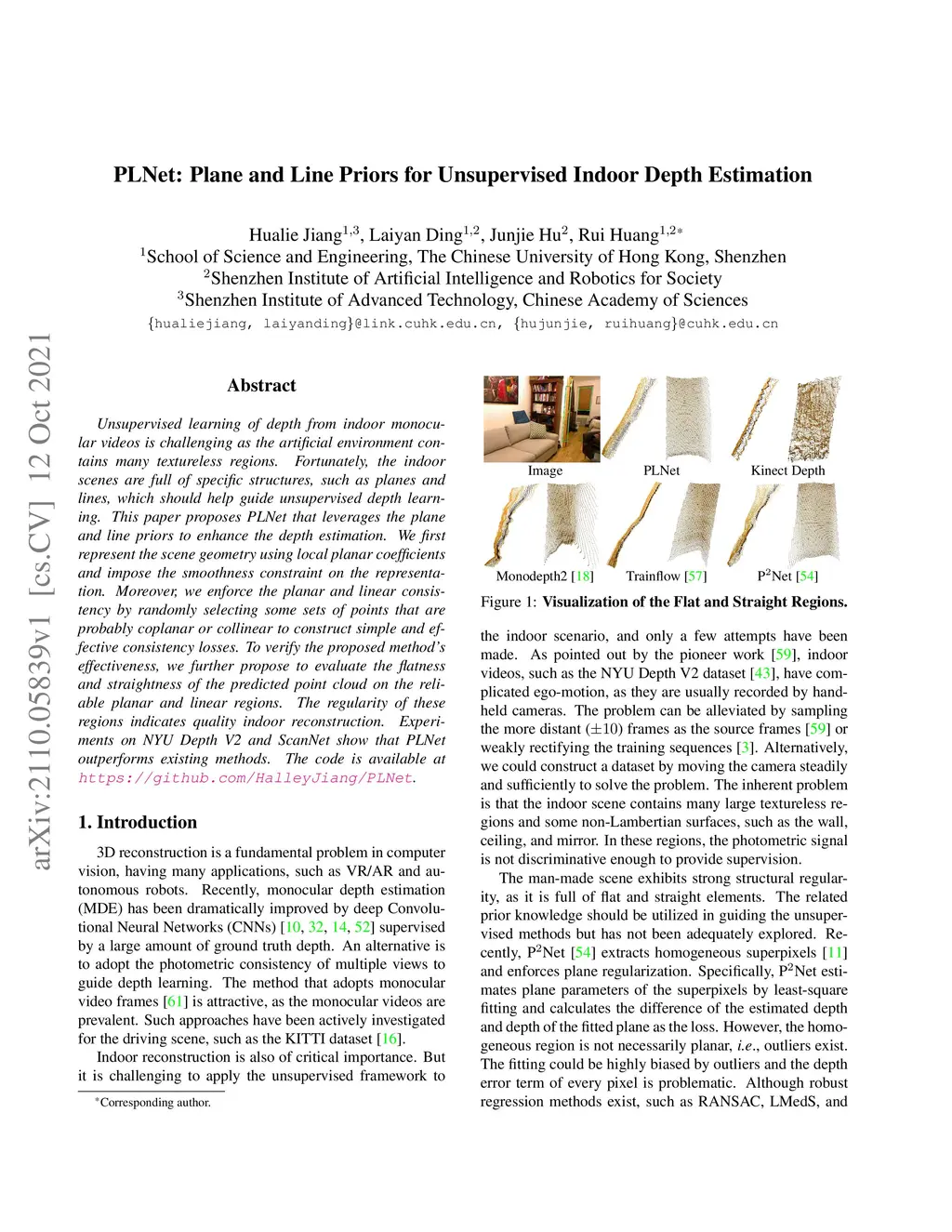 PLNet: Plane and Line Priors for Unsupervised Indoor Depth Estimation
