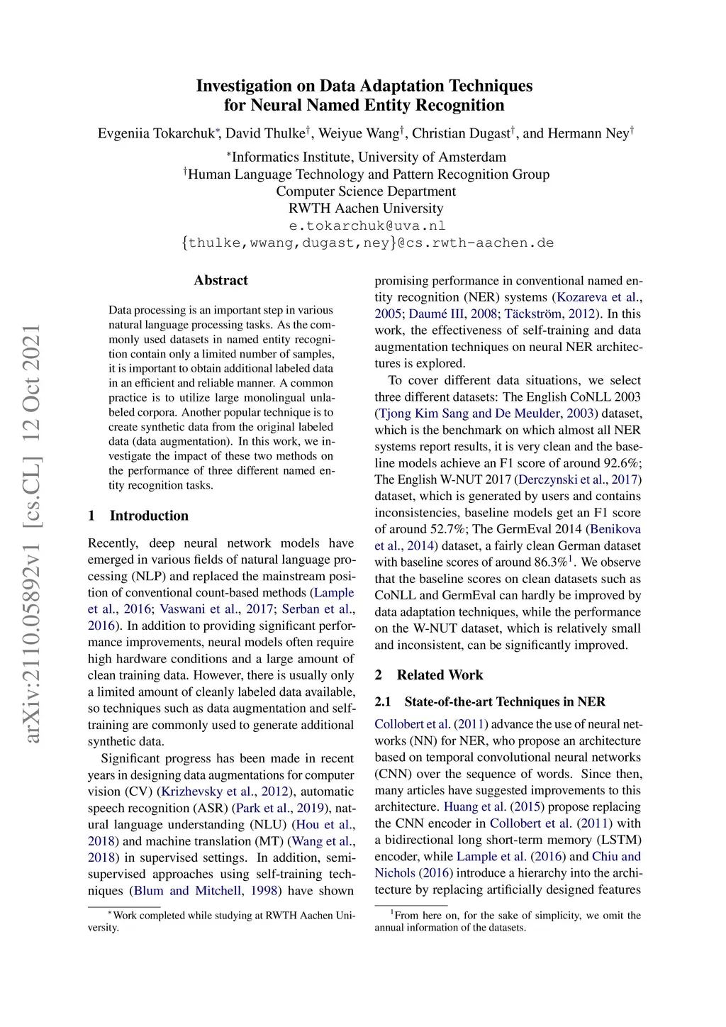 Investigation on Data Adaptation Techniques for Neural Named Entity