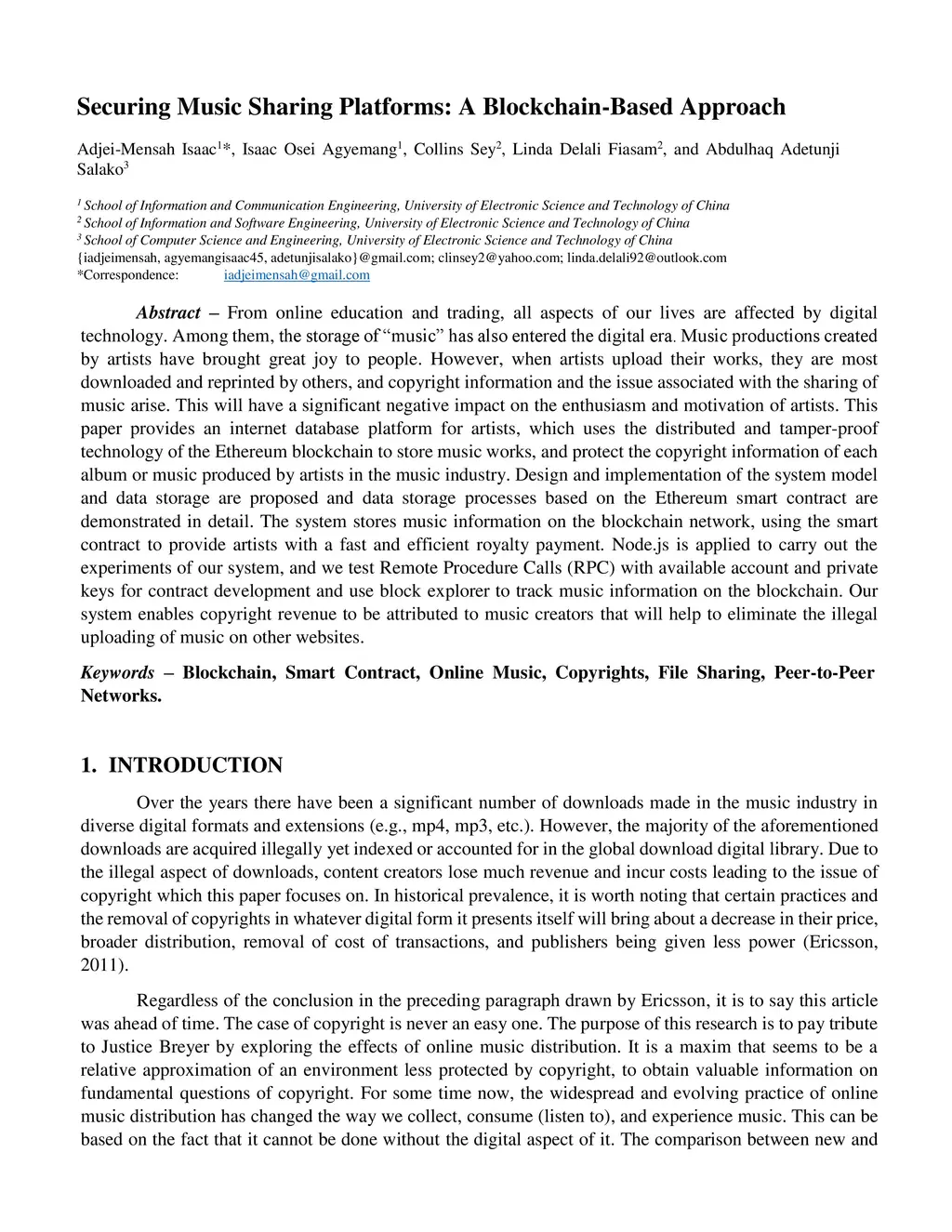 Securing music sharing platforms: A Blockchain-Based Approach