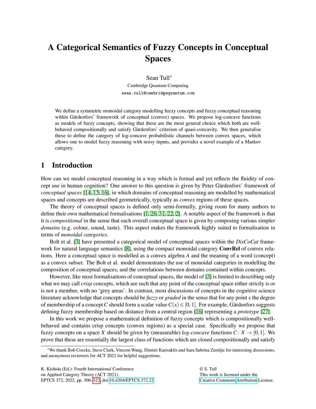 We define a symmetric monoidal category modelling fuzzy concepts and fuzzy conceptual reasoning within G\"ardenfors' framework of conceptual (convex) spaces. We propose log-concave functions as models of fuzzy concepts, showing that these are the most general choice satisfying a criterion due to G\"ardenfors and which are well-behaved compositionally. We then generalise these to define the category of log-concave probabilistic channels between convex spaces, which allows one to model fuzzy reasoning with noisy inputs, and provides a novel example of a Markov category.