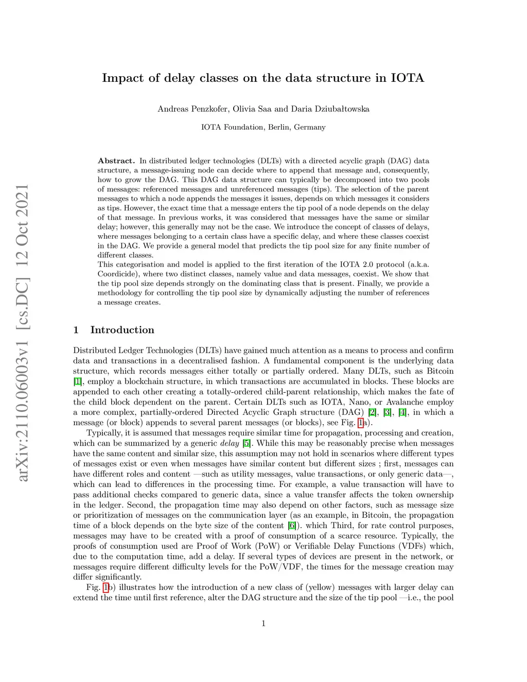 In distributed ledger technologies (DLTs) with a directed acyclic graph (DAG) data structure, a message-issuing node can decide where to append that message and, consequently, how to grow the DAG. This DAG data structure can typically be decomposed into two pools of messages: referenced messages and unreferenced messages (tips). The selection of the parent messages to which a node appends the messages it issues, depends on which messages it considers as tips. However, the exact time that a message enters the tip pool of a node depends on the delay of that message. In previous works, it was considered that messages have the same or similar delay; however, this generally may not be the case. We introduce the concept of classes of delays, where messages belonging to a certain class have a specific delay, and where these classes coexist in the DAG. We provide a general model that predicts the tip pool size for any finite number of different classes. This categorisation and model is applied to the first iteration of the IOTA 2.0 protocol (a.k.a. Coordicide), where two distinct classes, namely value and data messages, coexist. We show that the tip pool size depends strongly on the dominating class that is present. Finally, we provide a methodology for controlling the tip pool size by dynamically adjusting the number of references a message creates.