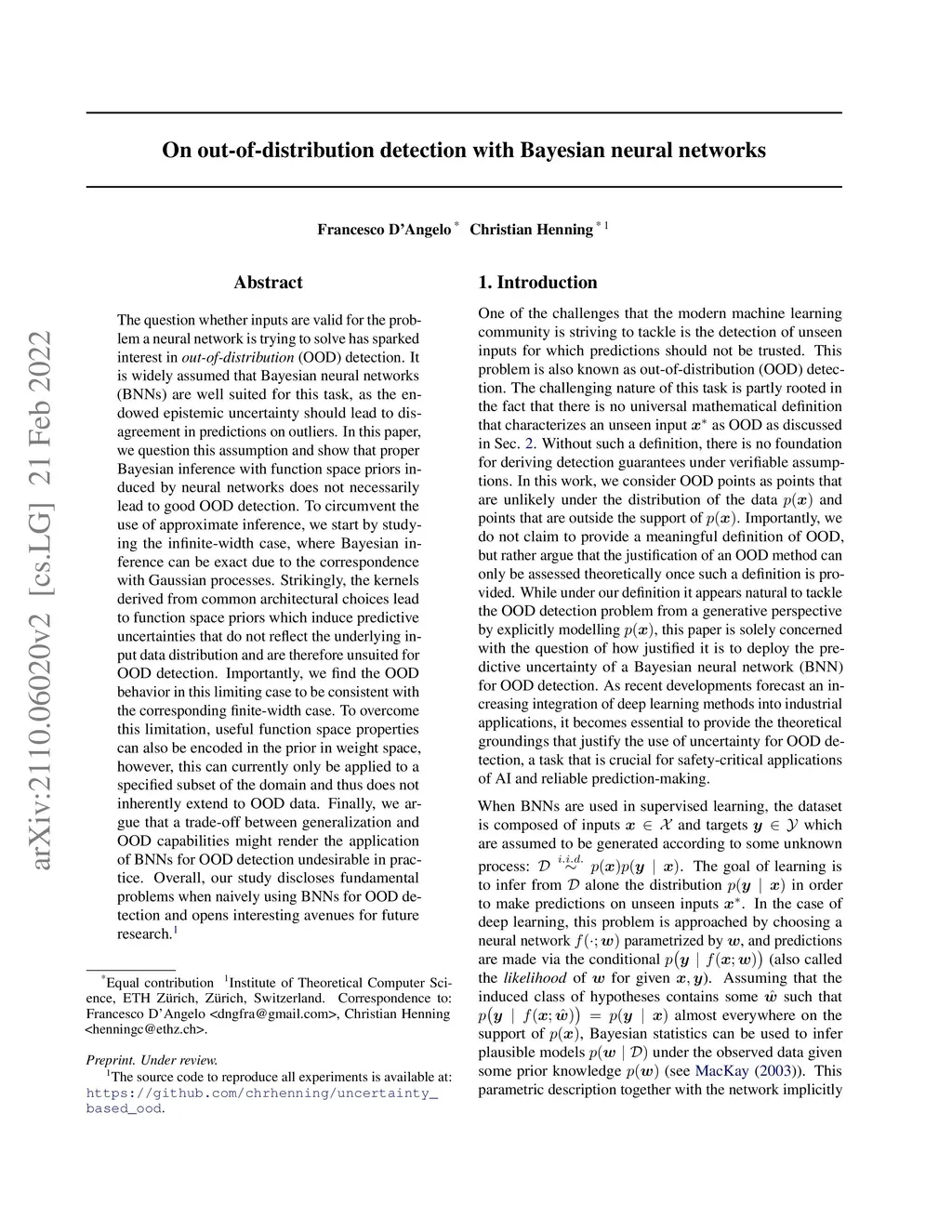 The question whether inputs are valid for the problem a neural network is trying to solve has sparked interest in out-of-distribution (OOD) detection. It is widely assumed that Bayesian neural networks (BNNs) are well suited for this task, as the endowed epistemic uncertainty should lead to disagreement in predictions on outliers. In this paper, we question this assumption and show that proper Bayesian inference with function space priors induced by neural networks does not necessarily lead to good OOD detection. To circumvent the use of approximate inference, we start by studying the infinite-width case, where Bayesian inference can be exact due to the correspondence with Gaussian processes. Strikingly, the kernels derived from common architectural choices lead to function space priors which induce predictive uncertainties that do not reflect the underlying input data distribution and are therefore unsuited for OOD detection. Importantly, we find the OOD behavior in this limiting case to be consistent with the corresponding finite-width case. To overcome this limitation, useful function space properties can also be encoded in the prior in weight space, however, this can currently only be applied to a specified subset of the domain and thus does not inherently extend to OOD data. Finally, we argue that a trade-off between generalization and OOD capabilities might render the application of BNNs for OOD detection undesirable in practice. Overall, our study discloses fundamental problems when naively using BNNs for OOD detection and opens interesting avenues for future research.
