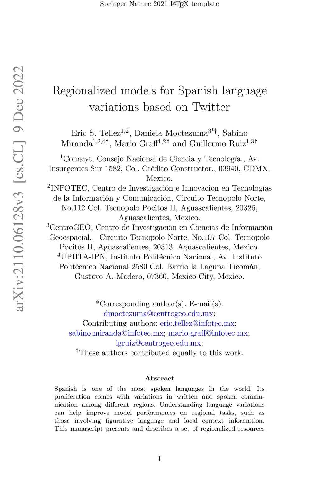 Regionalized models for Spanish language variations based on Twitter