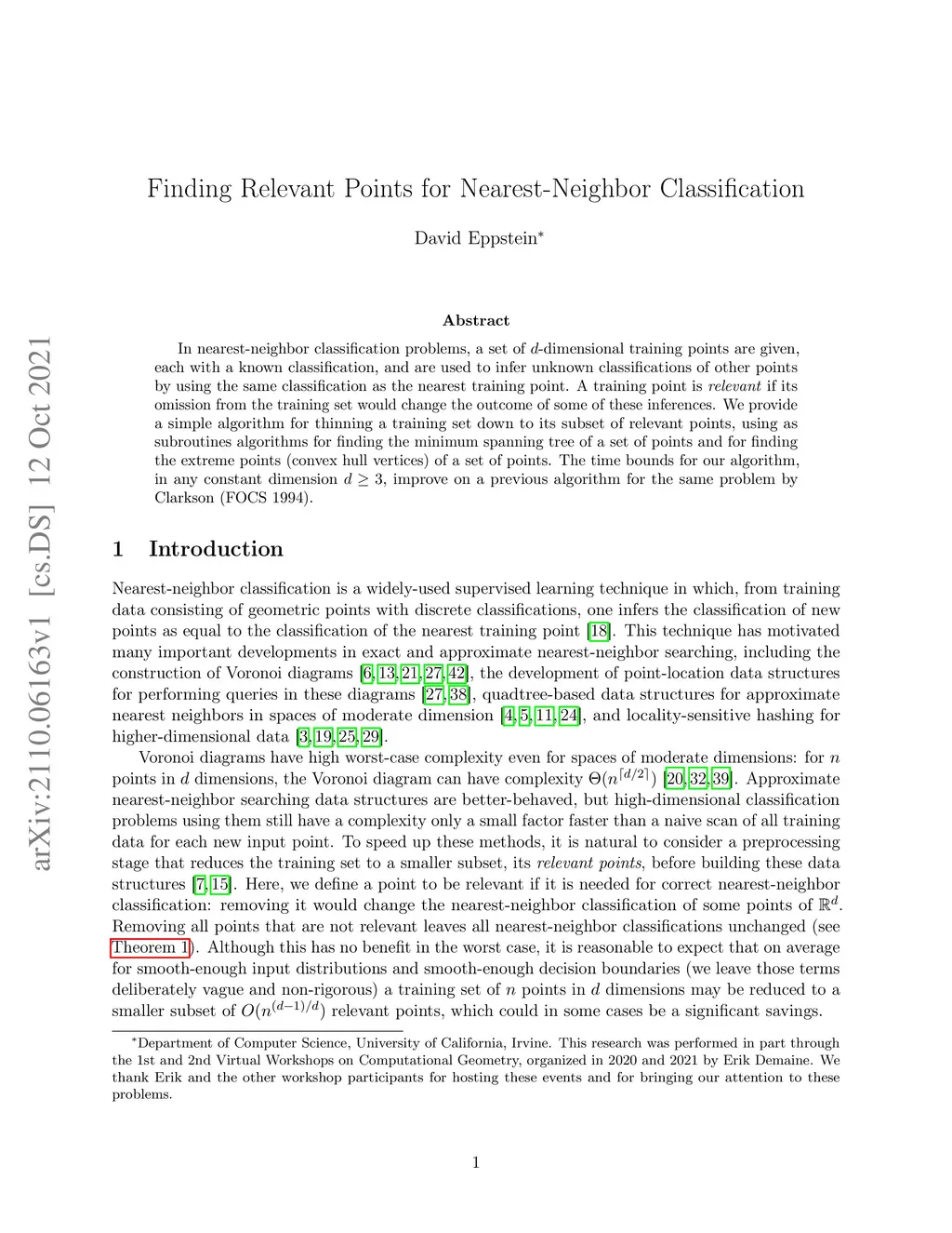 In nearest-neighbor classification problems, a set of -dimensional training points are given, each with a known classification, and are used to infer unknown classifications of other points by using the same classification as the nearest training point. A training point is relevant if its omission from the training set would change the outcome of some of these inferences. We provide a simple algorithm for thinning a training set down to its subset of relevant points, using as subroutines algorithms for finding the minimum spanning tree of a set of points and for finding the extreme points (convex hull vertices) of a set of points. The time bounds for our algorithm, in any constant dimension , improve on a previous algorithm for the same problem by Clarkson (FOCS 1994).