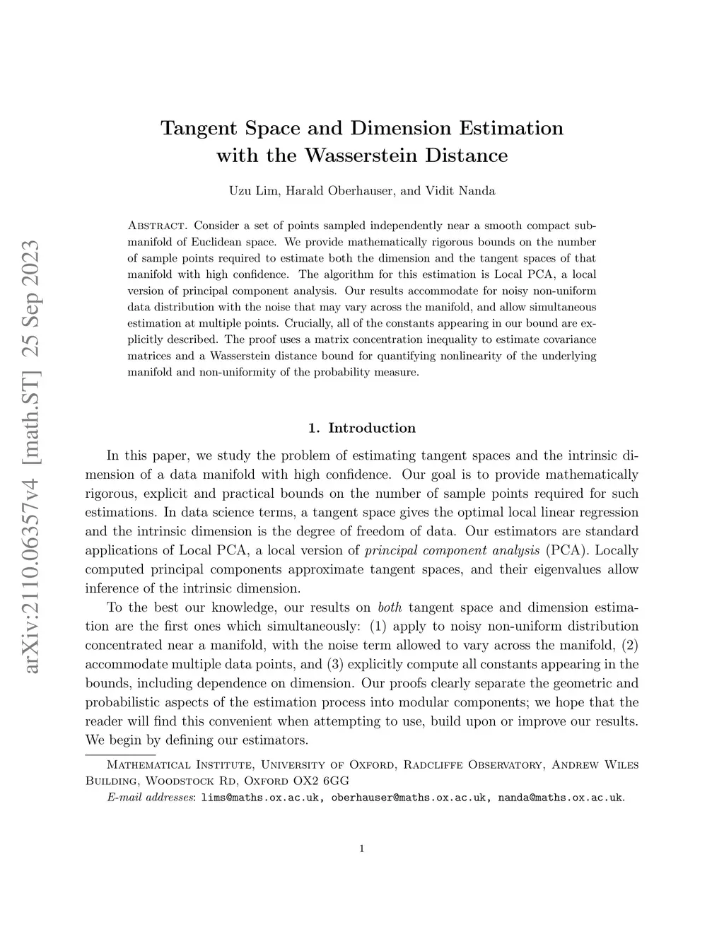 Tangent Space and Dimension Estimation with the Wasserstein Distance