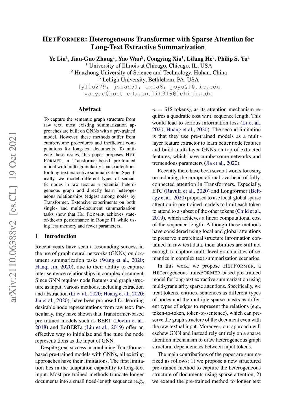HETFORMER: Heterogeneous Transformer with Sparse Attention for Long-Text