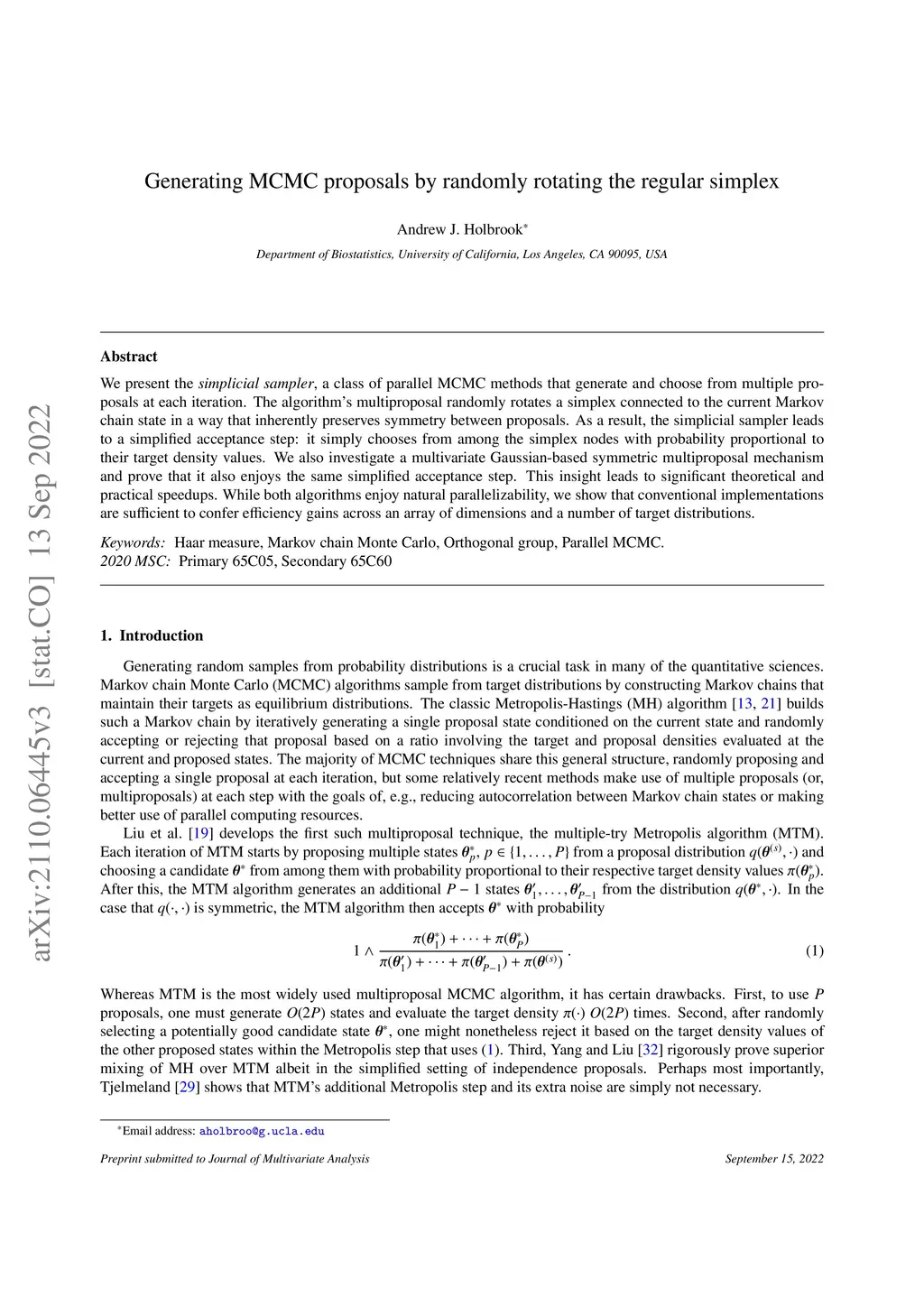 Generating MCMC proposals by randomly rotating the regular simplex