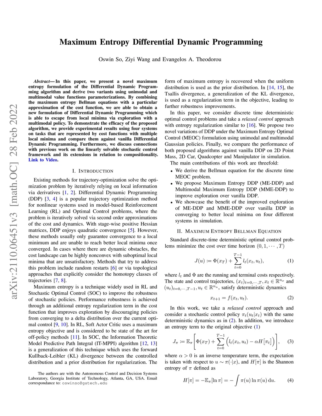 Maximum Entropy Differential Dynamic Programming