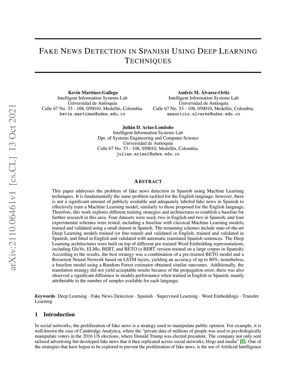 Fake News Detection in Spanish Using Deep Learning Techniques