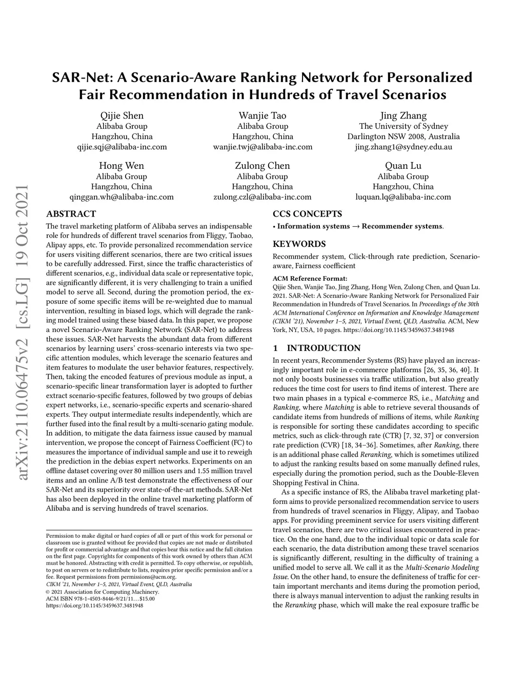 SAR-Net: A Scenario-Aware Ranking Network for Personalized Fair