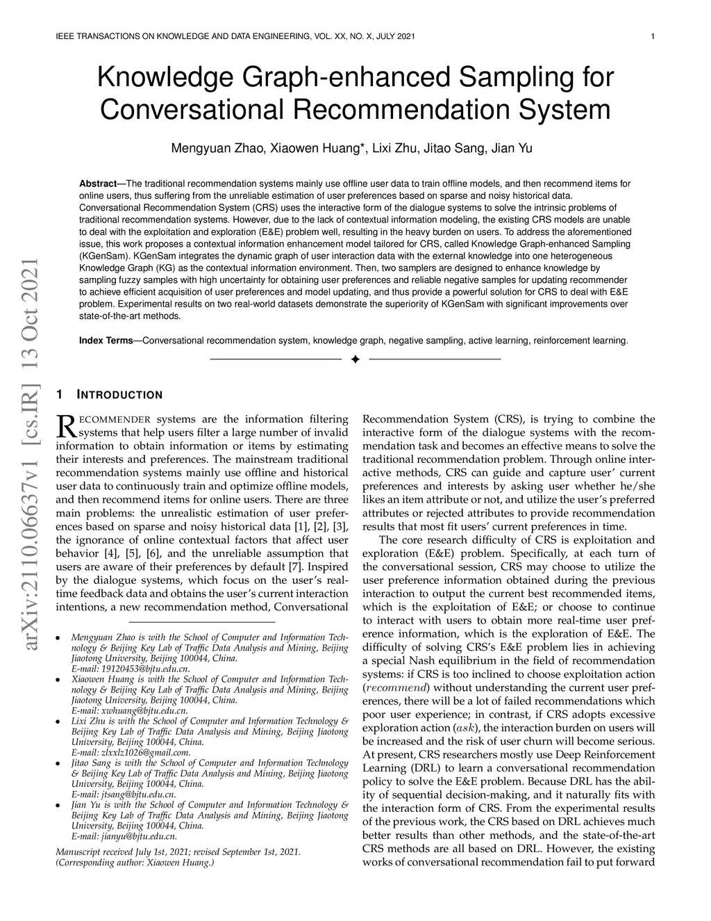 Knowledge Graph-enhanced Sampling for Conversational Recommender System