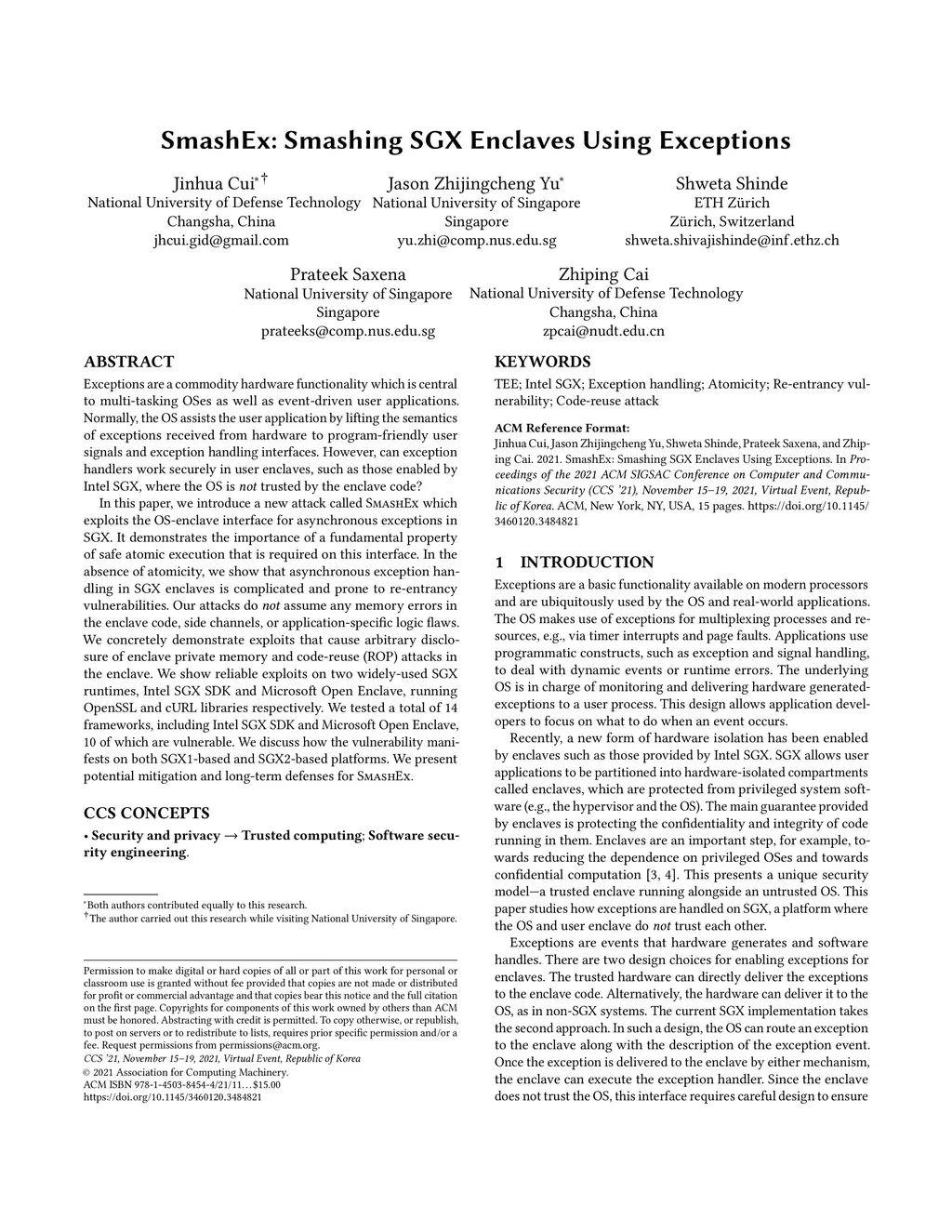 SmashEx: Smashing SGX Enclaves Using Exceptions