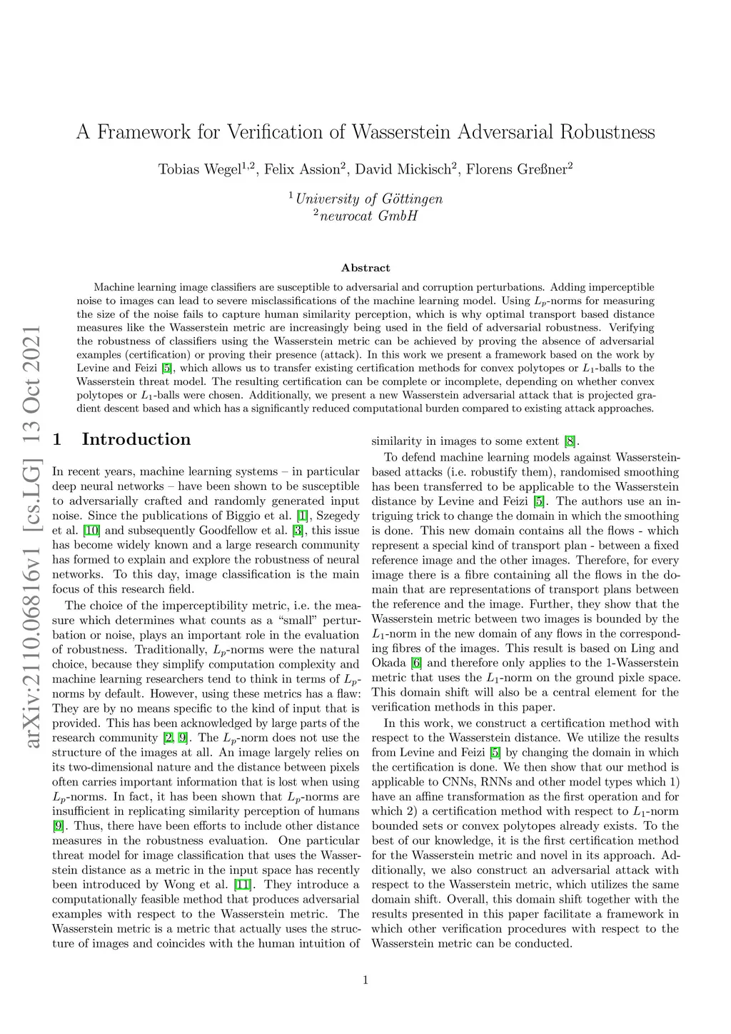 Machine learning image classifiers are susceptible to adversarial and corruption perturbations. Adding imperceptible noise to images can lead to severe misclassifications of the machine learning model. Using -norms for measuring the size of the noise fails to capture human similarity perception, which is why optimal transport based distance measures like the Wasserstein metric are increasingly being used in the field of adversarial robustness. Verifying the robustness of classifiers using the Wasserstein metric can be achieved by proving the absence of adversarial examples (certification) or proving their presence (attack). In this work we present a framework based on the work by Levine and Feizi, which allows us to transfer existing certification methods for convex polytopes or -balls to the Wasserstein threat model. The resulting certification can be complete or incomplete, depending on whether convex polytopes or -balls were chosen. Additionally, we present a new Wasserstein adversarial attack that is projected gradient descent based and which has a significantly reduced computational burden compared to existing attack approaches.