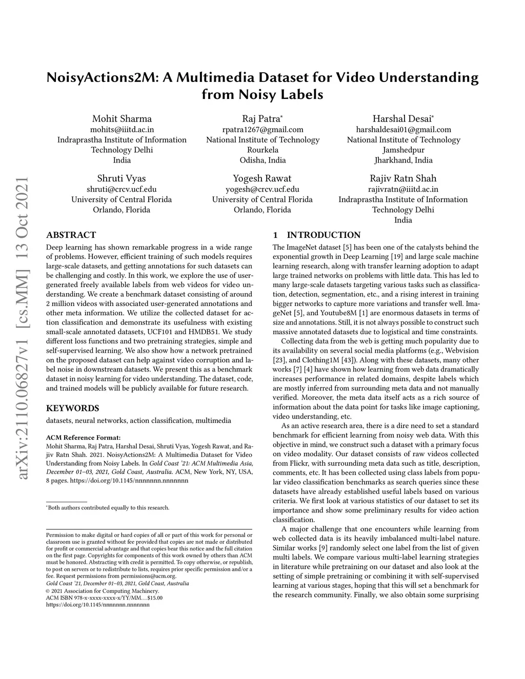 NoisyActions2M: A Multimedia Dataset for Video Understanding from Noisy