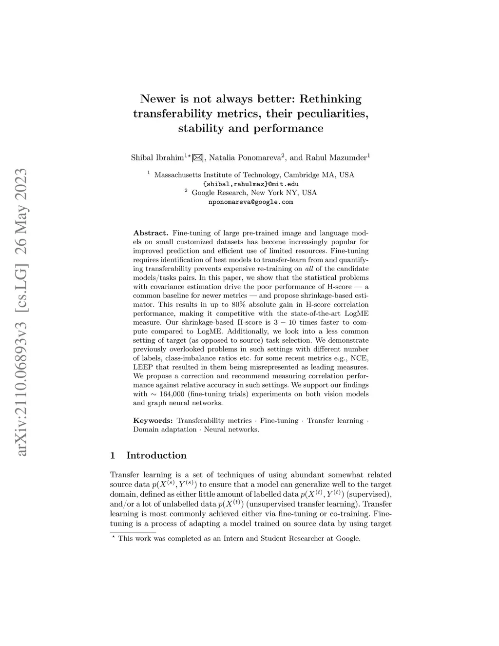 Fine-tuning of large pre-trained image and language models on small customized datasets has become increasingly popular for improved prediction and efficient use of limited resources. Fine-tuning requires identification of best models to transfer-learn from and quantifying transferability prevents expensive re-training on all of the candidate models/tasks pairs. We show that the statistical problems with covariance estimation drive the poor performance of H-score [Bao et al., 2019] -- a common baseline for newer metrics -- and propose shrinkage-based estimator. This results in up to 80% absolute gain in H-score correlation performance, making it competitive with the state-of-the-art LogME measure by You et al. [2021]. Our shrinkage-based H-score is 3-55 times faster to compute compared to LogME. Additionally, we look into a less common setting of target (as opposed to source) task selection. We identify previously overlooked problems in such settings with different number of labels, class-imbalance ratios etc. for some recent metrics e.g., LEEP [Nguyen et al., 2020] that resulted in them being misrepresented as leading measures. We propose a correction and recommend measuring correlation performance against relative accuracy in such settings. We also outline the difficulties of comparing feature-dependent metrics, both supervised (e.g. H-score) and unsupervised measures (e.g., Maximum Mean Discrepancy [Long et al., 2015]), across source models/layers with different feature embedding dimension. We show that dimensionality reduction methods allow for meaningful comparison across models and improved performance of some of these measures. We investigate performance of 14 different supervised and unsupervised metrics and demonstrate that even unsupervised metrics can identify the leading models for domain adaptation. We support our findings with ~65,000 (fine-tuning trials) experiments.