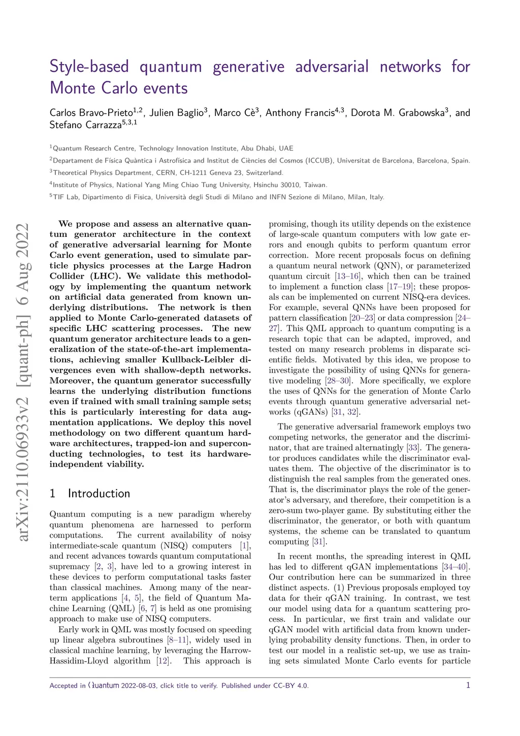 Style-based quantum generative adversarial networks for Monte Carlo