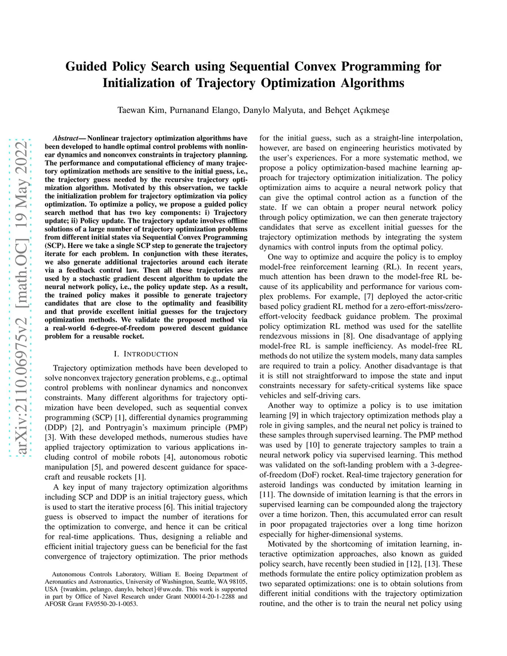 Initialization of Trajectory Optimization Algorithms