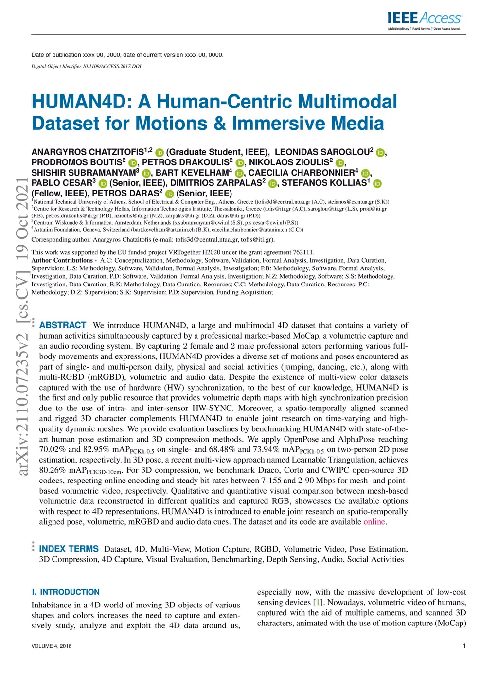 HUMAN4D: A Human-Centric Multimodal Dataset for Motions and Immersive