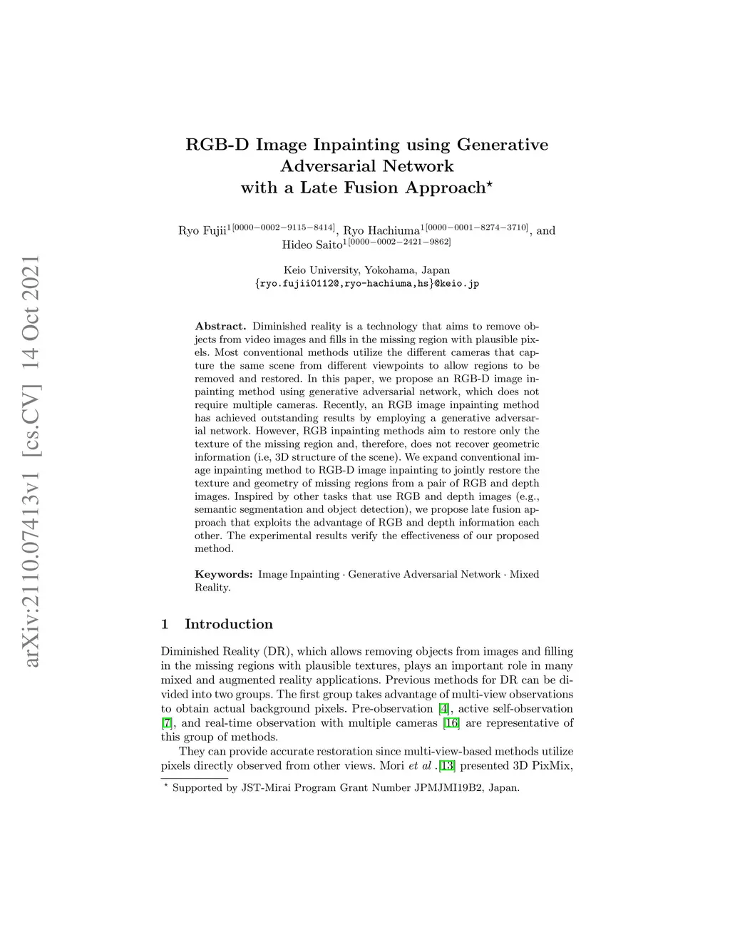 RGB-D Image Inpainting Using Generative Adversarial Network with a Late