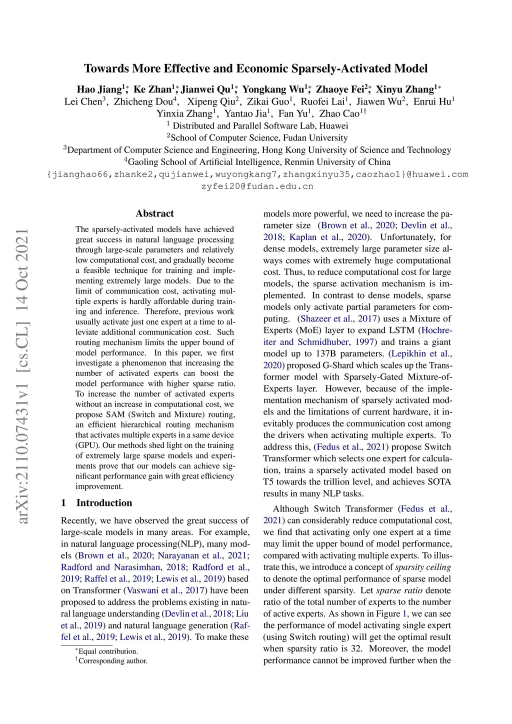 The sparsely-activated models have achieved great success in natural language processing through large-scale parameters and relatively low computational cost, and gradually become a feasible technique for training and implementing extremely large models. Due to the limit of communication cost, activating multiple experts is hardly affordable during training and inference. Therefore, previous work usually activate just one expert at a time to alleviate additional communication cost. Such routing mechanism limits the upper bound of model performance. In this paper, we first investigate a phenomenon that increasing the number of activated experts can boost the model performance with higher sparse ratio. To increase the number of activated experts without an increase in computational cost, we propose SAM (Switch and Mixture) routing, an efficient hierarchical routing mechanism that activates multiple experts in a same device (GPU). Our methods shed light on the training of extremely large sparse models and experiments prove that our models can achieve significant performance gain with great efficiency improvement.