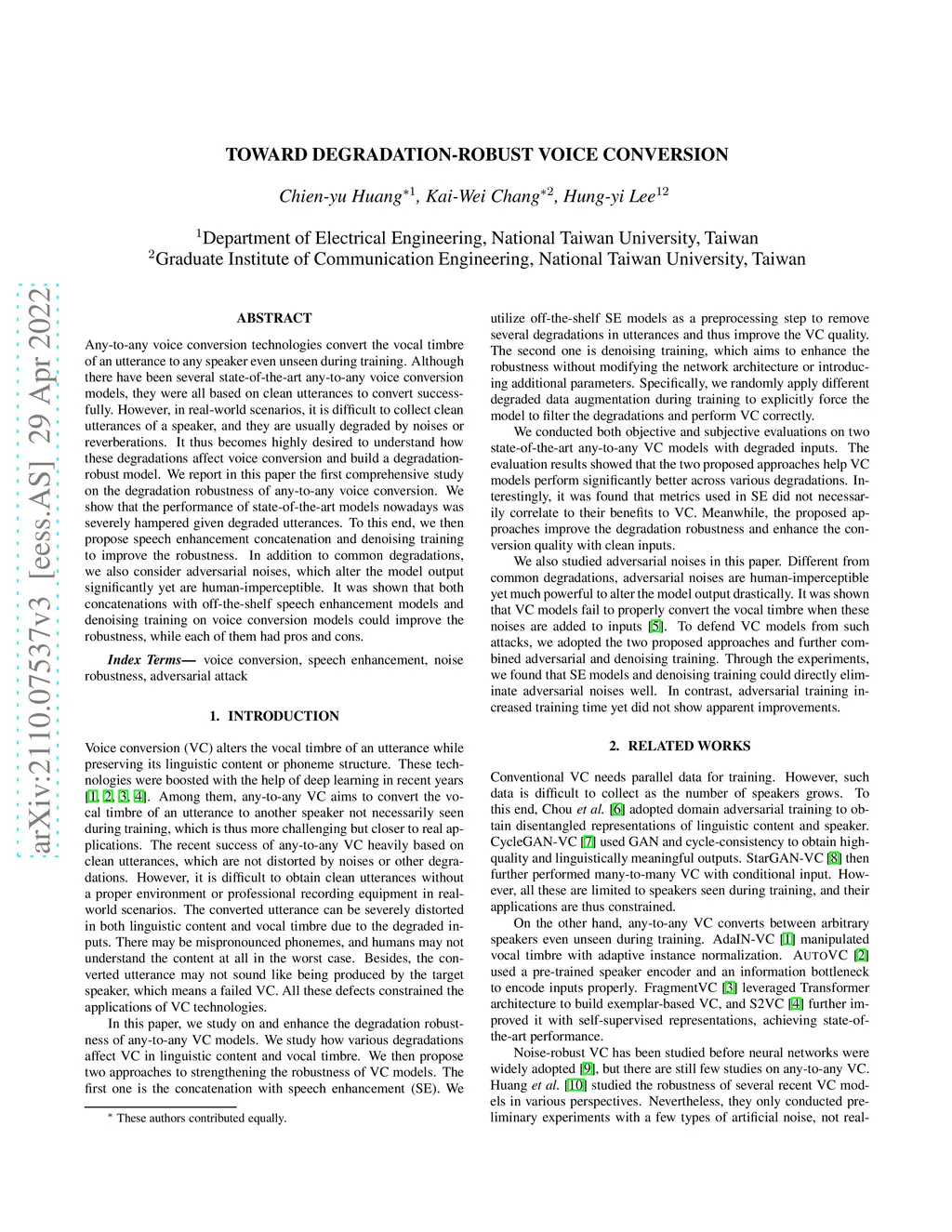 Any-to-any voice conversion technologies convert the vocal timbre of an utterance to any speaker even unseen during training. Although there have been several state-of-the-art any-to-any voice conversion models, they were all based on clean utterances to convert successfully. However, in real-world scenarios, it is difficult to collect clean utterances of a speaker, and they are usually degraded by noises or reverberations. It thus becomes highly desired to understand how these degradations affect voice conversion and build a degradation-robust model. We report in this paper the first comprehensive study on the degradation robustness of any-to-any voice conversion. We show that the performance of state-of-the-art models nowadays was severely hampered given degraded utterances. To this end, we then propose speech enhancement concatenation and denoising training to improve the robustness. In addition to common degradations, we also consider adversarial noises, which alter the model output significantly yet are human-imperceptible. It was shown that both concatenations with off-the-shelf speech enhancement models and denoising training on voice conversion models could improve the robustness, while each of them had pros and cons.