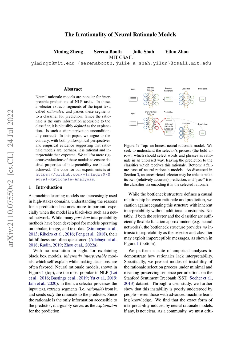 The Irrationality of Neural Rationale Models