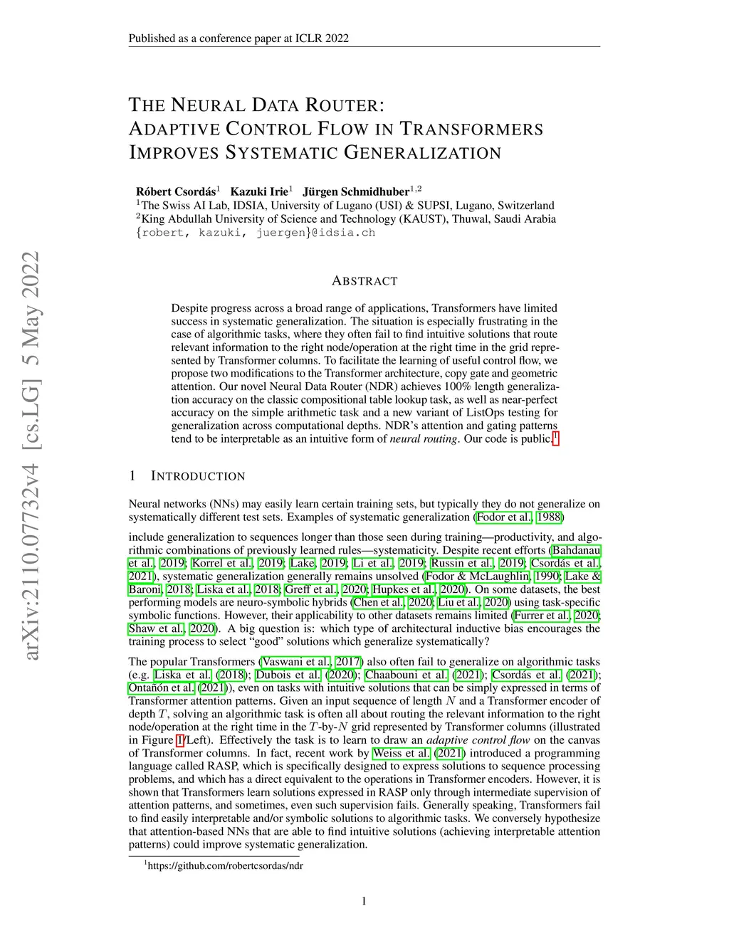 The Neural Data Router: Adaptive Control Flow in Transformers Improves