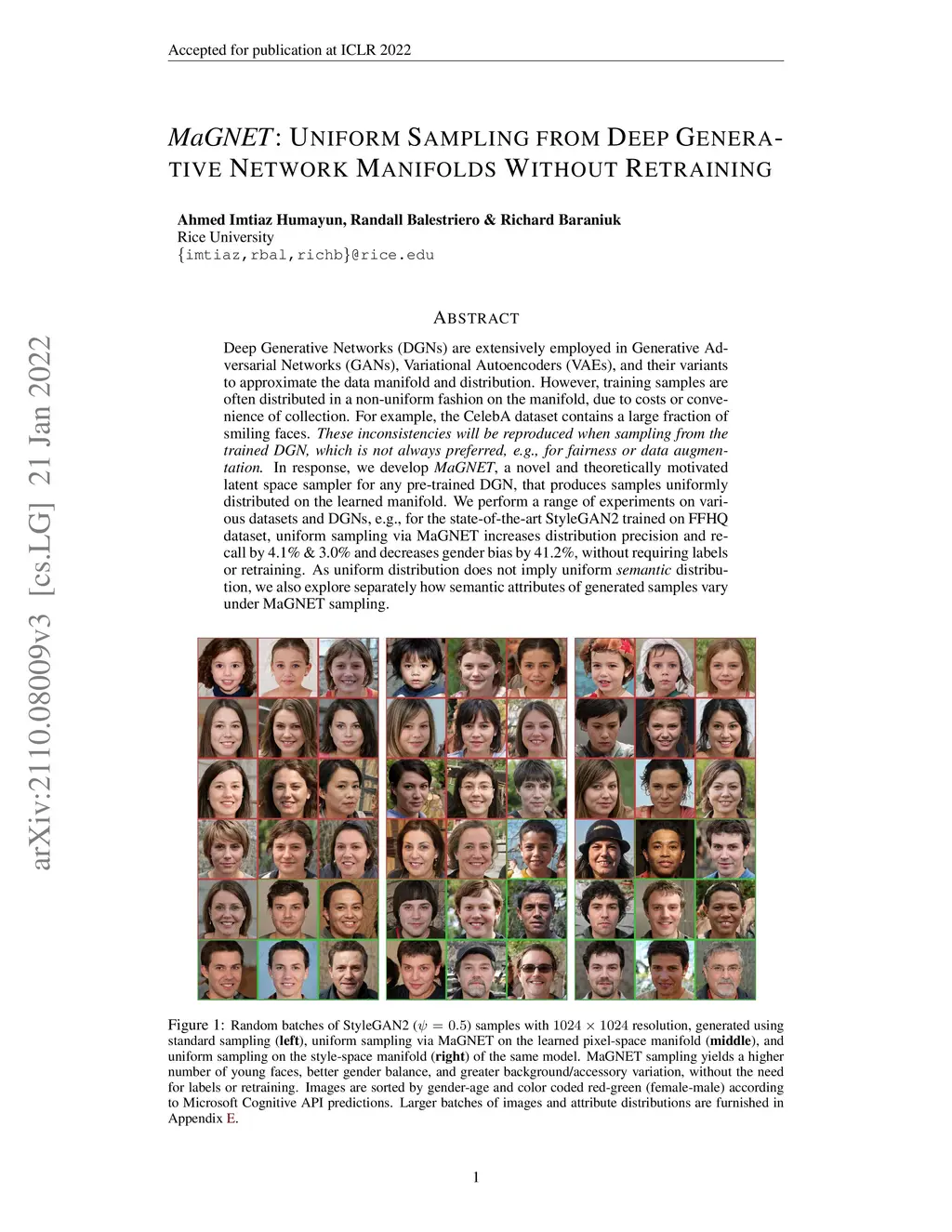 MaGNET: Uniform Sampling from Deep Generative Network Manifolds Without