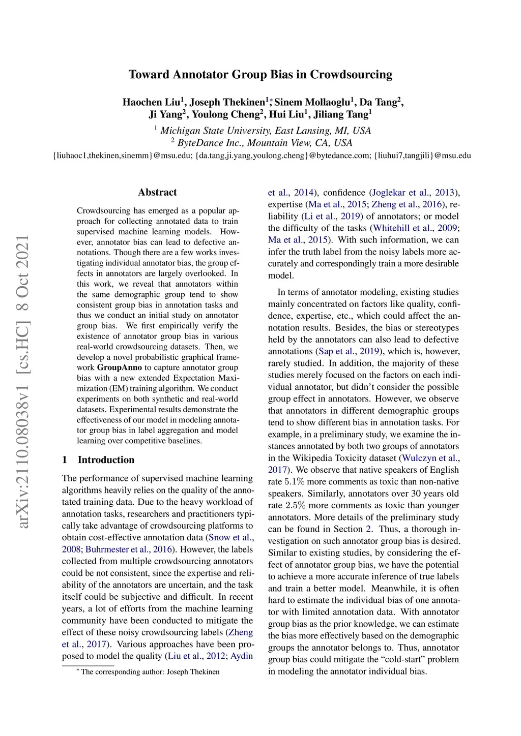 Toward Annotator Group Bias in Crowdsourcing