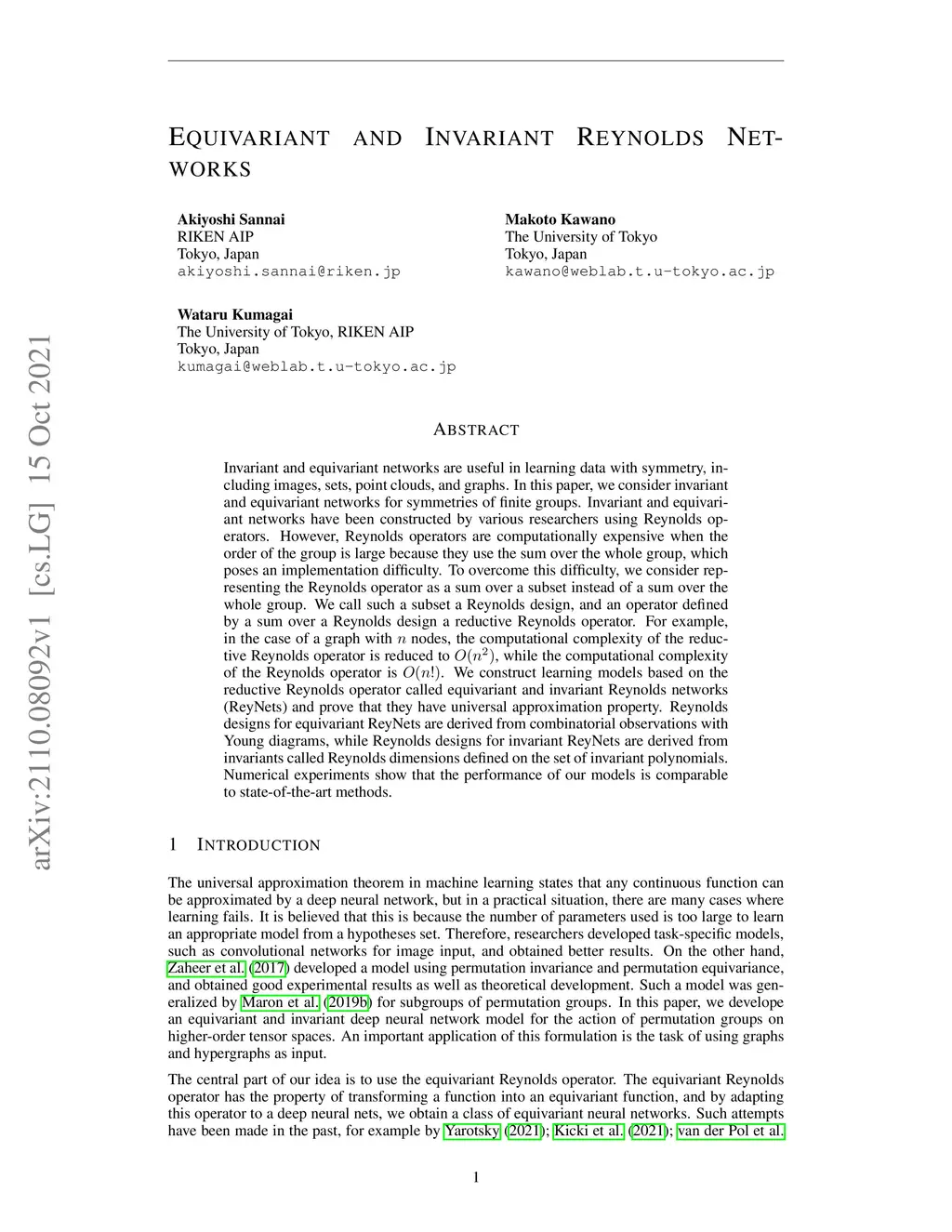 Invariant and equivariant networks are useful in learning data with symmetry, including images, sets, point clouds, and graphs. In this paper, we consider invariant and equivariant networks for symmetries of finite groups. Invariant and equivariant networks have been constructed by various researchers using Reynolds operators. However, Reynolds operators are computationally expensive when the order of the group is large because they use the sum over the whole group, which poses an implementation difficulty. To overcome this difficulty, we consider representing the Reynolds operator as a sum over a subset instead of a sum over the whole group. We call such a subset a Reynolds design, and an operator defined by a sum over a Reynolds design a reductive Reynolds operator. For example, in the case of a graph with nodes, the computational complexity of the reductive Reynolds operator is reduced to , while the computational complexity of the Reynolds operator is . We construct learning models based on the reductive Reynolds operator called equivariant and invariant Reynolds networks (ReyNets) and prove that they have universal approximation property. Reynolds designs for equivariant ReyNets are derived from combinatorial observations with Young diagrams, while Reynolds designs for invariant ReyNets are derived from invariants called Reynolds dimensions defined on the set of invariant polynomials. Numerical experiments show that the performance of our models is comparable to state-of-the-art methods.