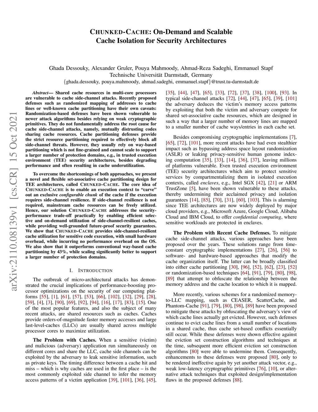 Chunked-Cache: On-Demand and Scalable Cache Isolation for Security